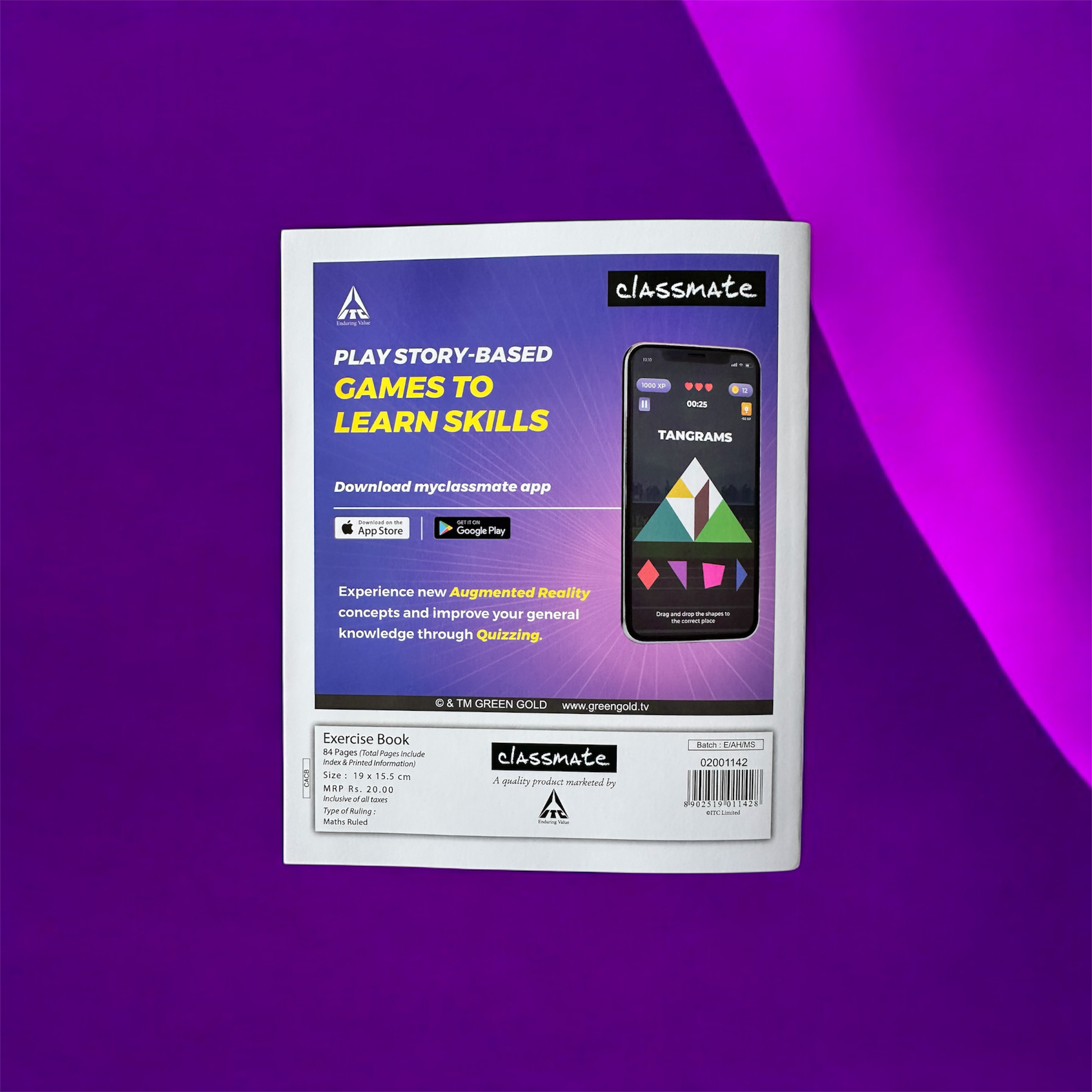 Classmate Notebook – 56 Pages, 19 × 15.5 cm | Maths Ruled
